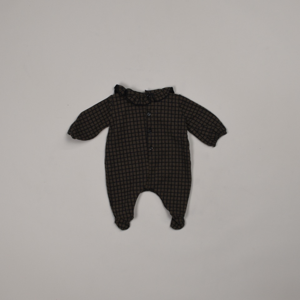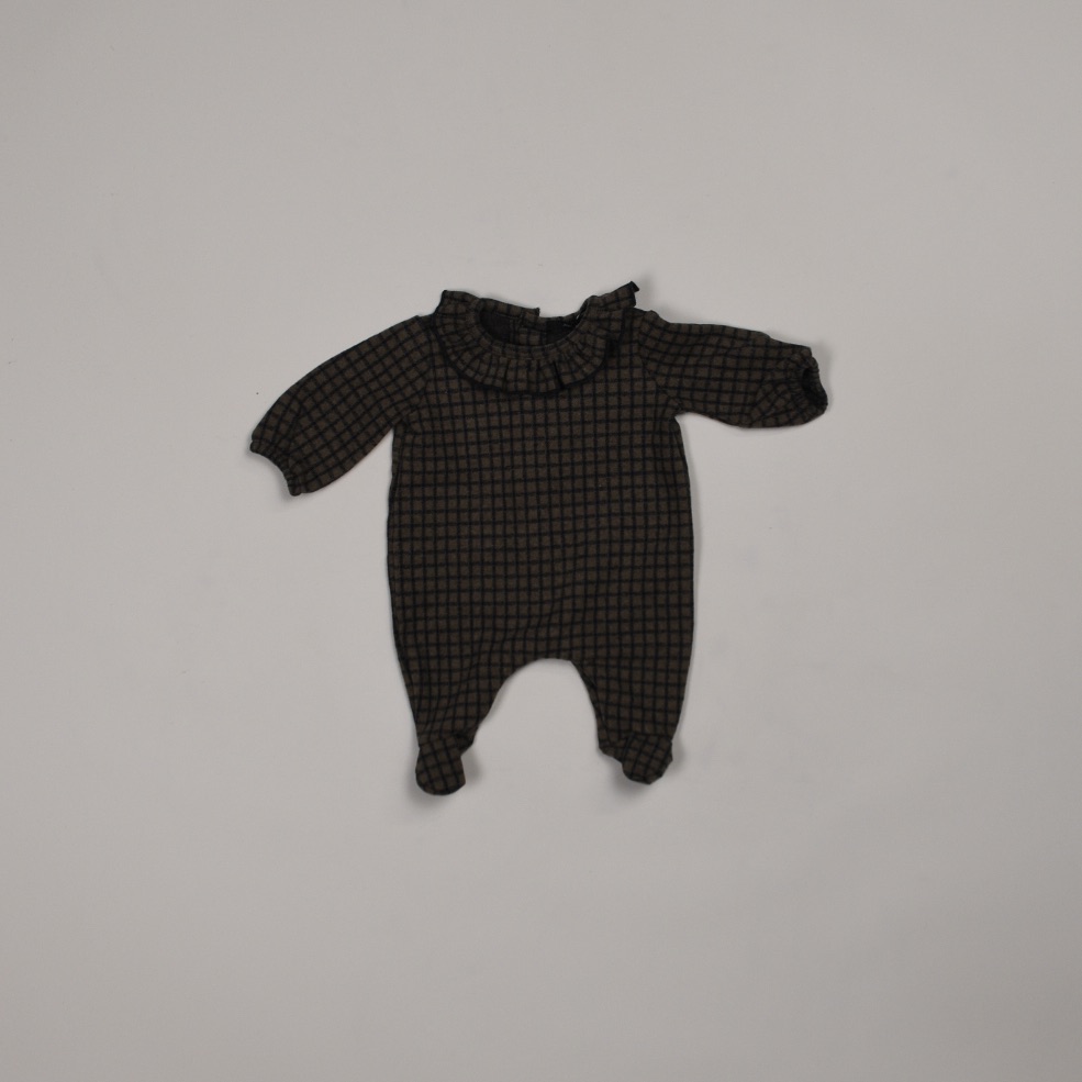 Tutina A24 in morbido tessuto a quadri nei toni del marrone e nero, con colletto a volant e maniche arricciate. Chiusura posteriore con bottoncini per una vestibilità pratica e confortevole. Un capo caldo e raffinato, perfetto per la stagione autunno/inverno.
