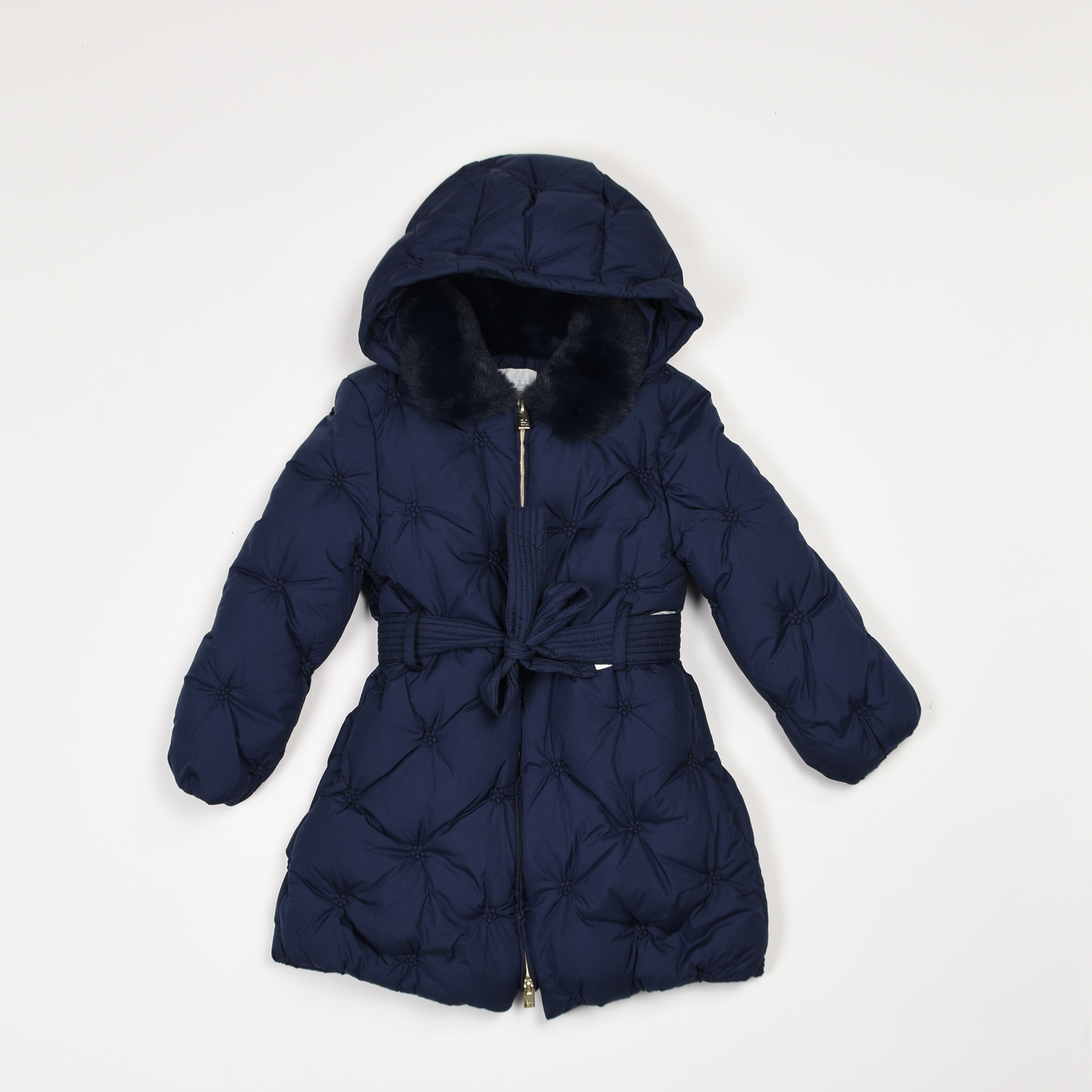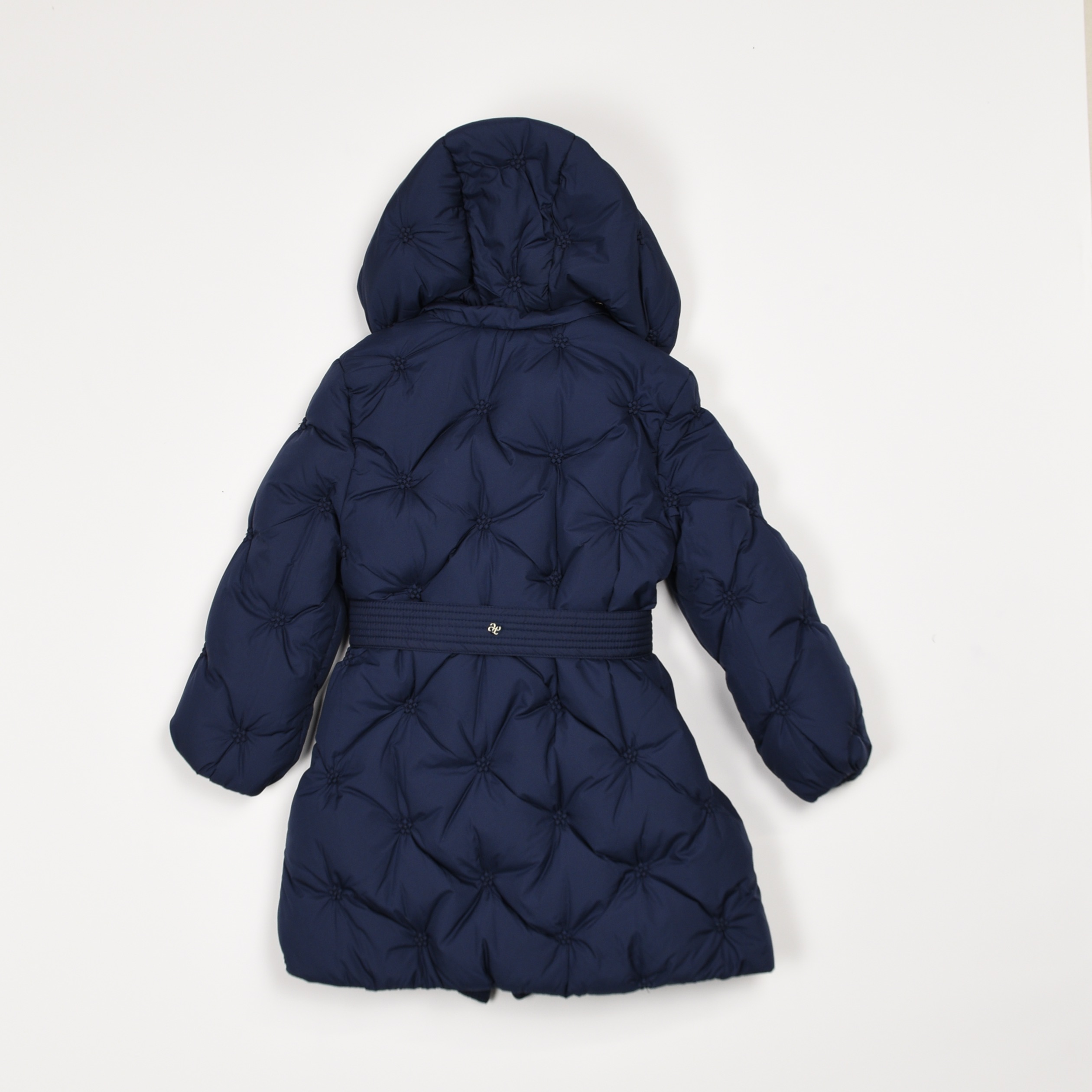 Piumino elegante da bambina firmato Abel & Lula, in tessuto trapuntato con motivo a fiorellini tono su tono.