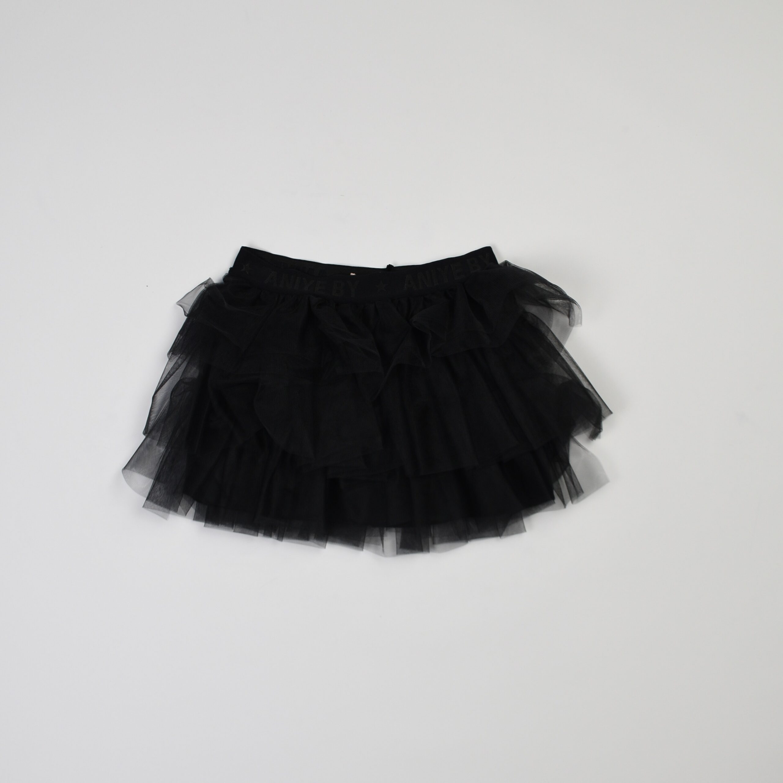 Gonna corta in tulle nero con balze sovrapposte che donano volume e movimento al capo. Fascia elastica in vita con logo tono su tono per un tocco sport-chic. Un modello grintoso e femminile, perfetto per creare look dinamici e alla moda.