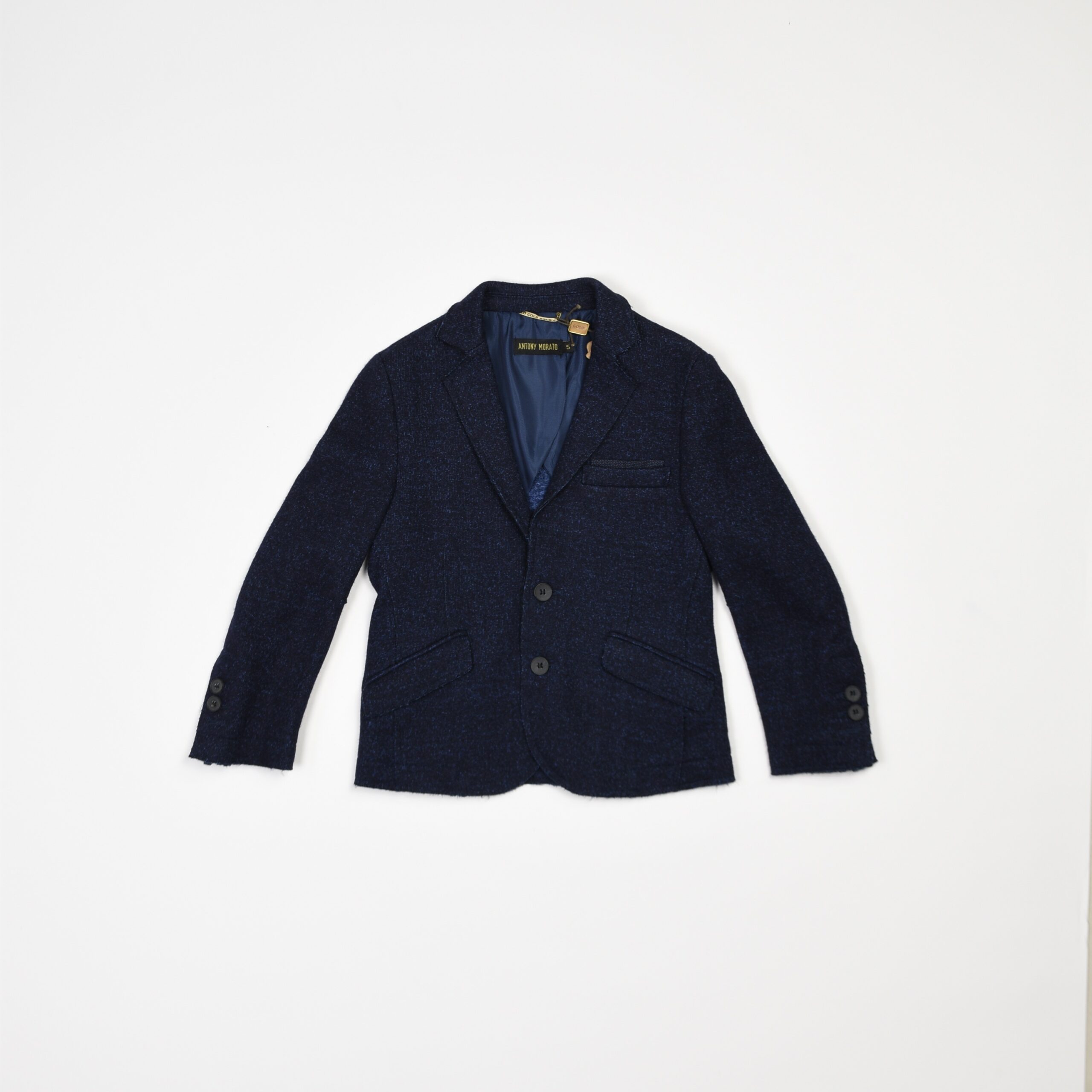 Giacca monopetto Antony Morato in tessuto blu mélange con rever classico e chiusura a due bottoni. Presenta taschino sul petto e tasche frontali con patta, interno foderato in contrasto. Un capo raffinato, perfetto per cerimonie, eventi o per completare con stile un look elegante da tutti i giorni.