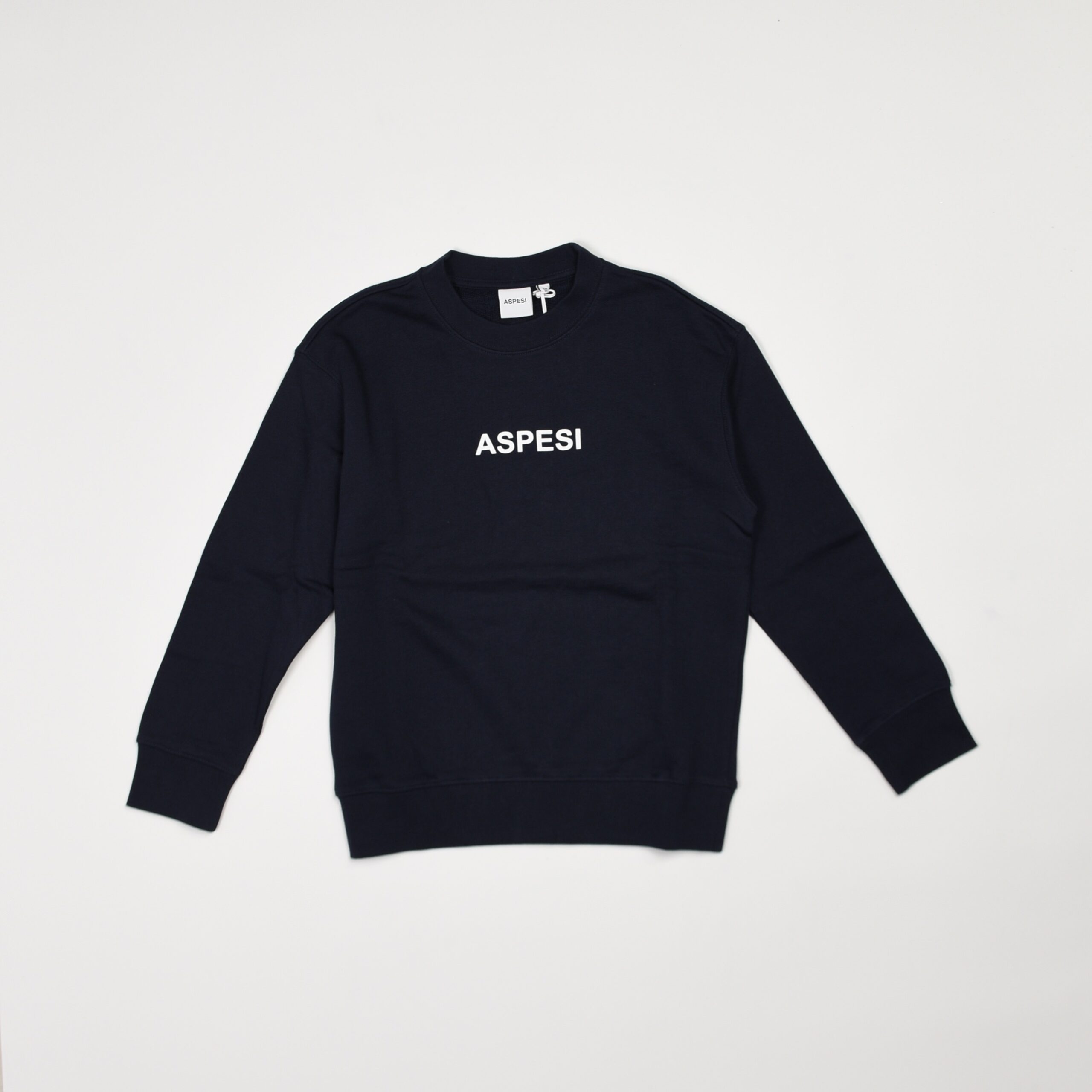 Felpa girocollo in cotone color blu navy, caratterizzata da linea pulita ed essenziale. Sul davanti è presente la scritta ASPESI a contrasto bianco. Modello con polsini, fondo e collo a costine per una vestibilità confortevole.