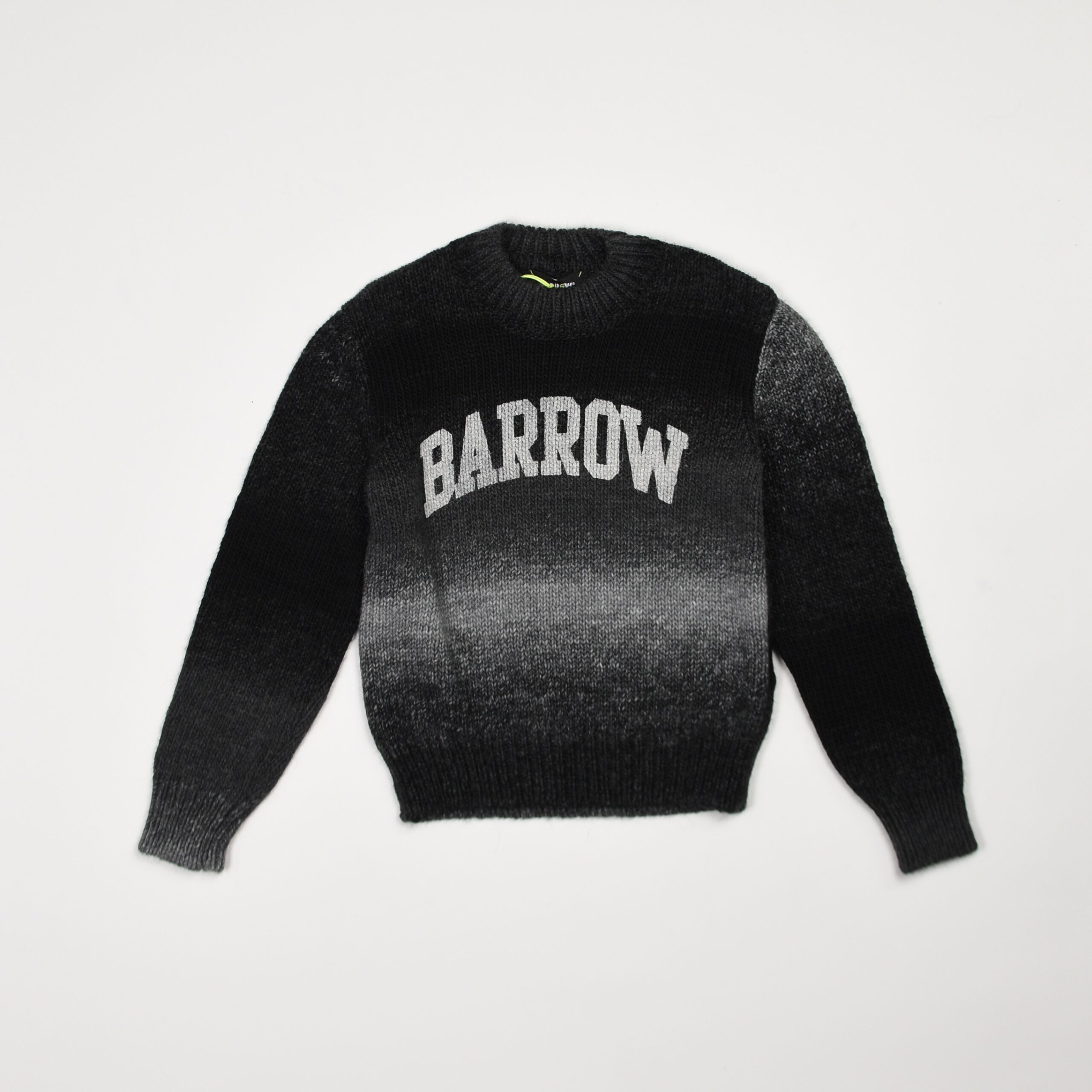 Maglione Barrow in lana a effetto sfumato nei toni del nero e grigio. Modello girocollo con maniche lunghe e scritta jacquard “Barrow” sul davanti. Fondo e polsini rifiniti a costine.
