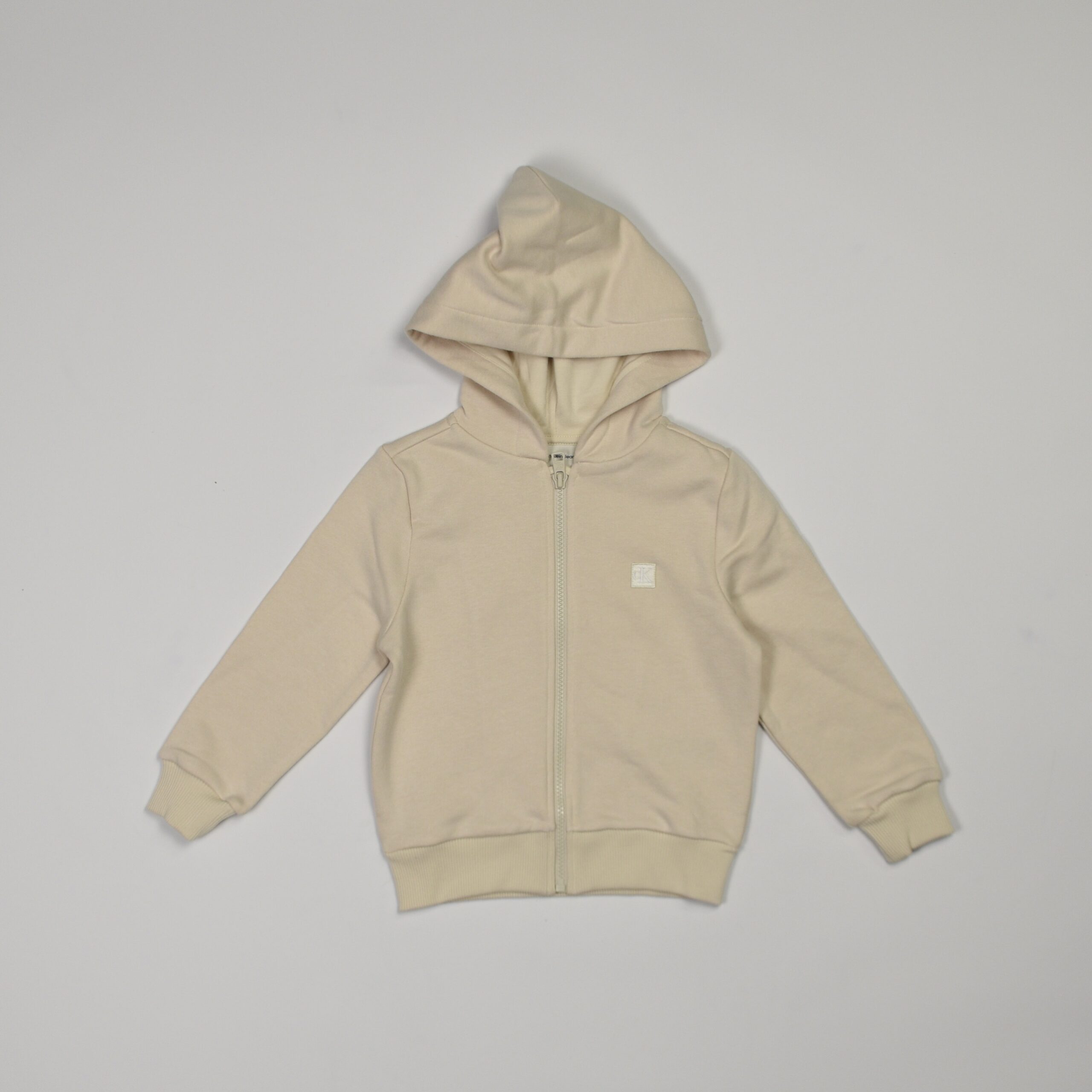 Felpa full zip con cappuccio firmata Calvin Klein, realizzata in morbido cotone color beige. Modello essenziale e versatile, arricchito dal logo discreto ricamato sul petto. Un capo pratico e moderno, perfetto per completare i look casual dei bambini.
