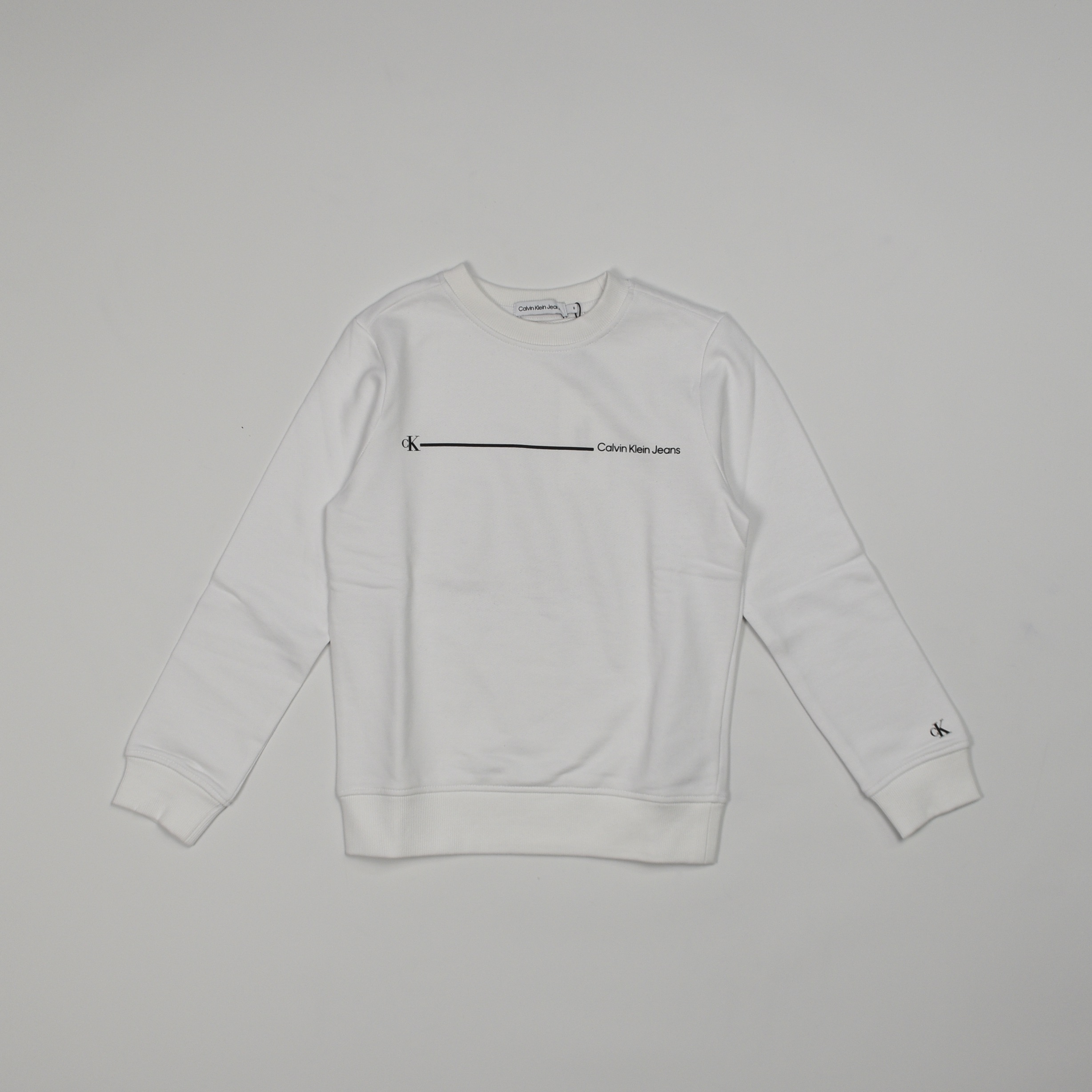 Felpa girocollo in cotone bianco firmata Calvin Klein Jeans. Un modello essenziale dal taglio pulito, arricchito dal logo minimal in nero sul davanti e sul polsino. Un capo intramontabile, che gioca con la semplicità e l’eleganza tipica del brand, perfetto per look versatili e moderni.