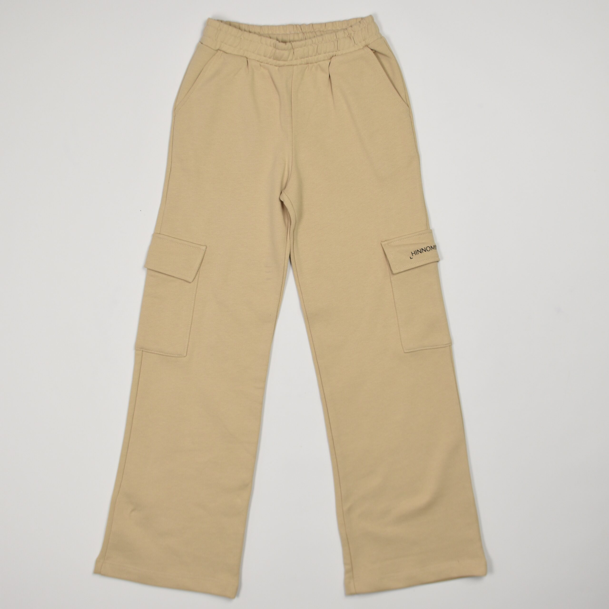 Pantalone Innominate in felpa color beige, con linea dritta e gamba ampia. La vita è elasticizzata per garantire comfort e praticità, mentre le tasche laterali e quelle cargo applicate sui lati donano un carattere casual e funzionale. Un capo dal design essenziale, reso unico dal dettaglio con logo ricamato sulla tasca, perfetto per uno stile contemporaneo e rilassato.