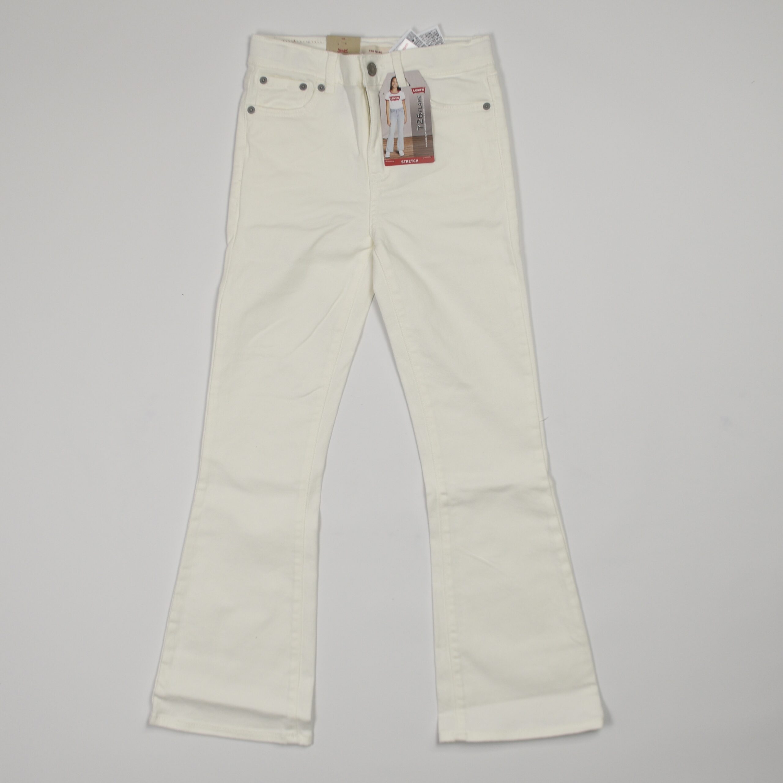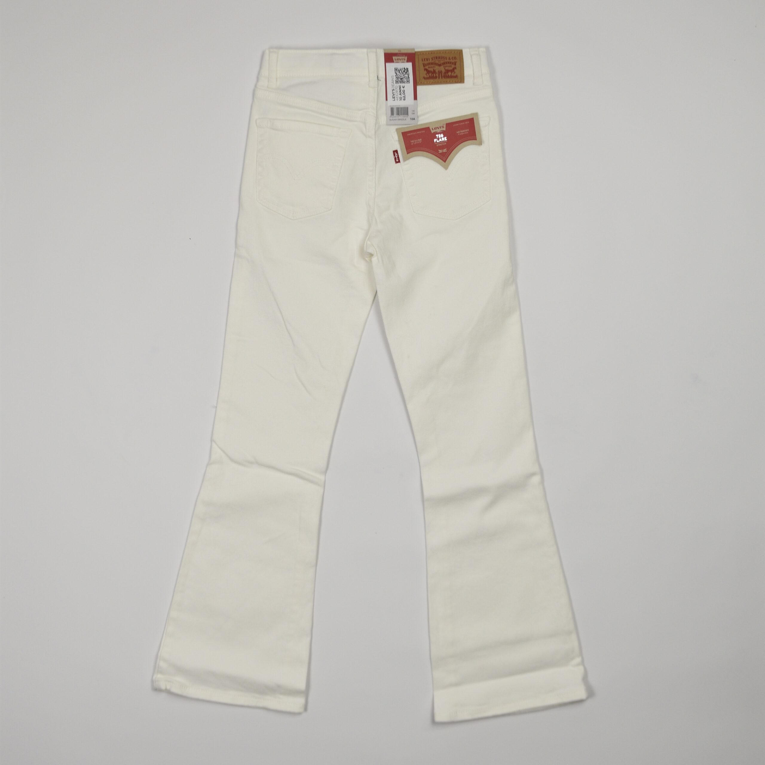 Jeans Levi’s in denim bianco panna, caratterizzato da una linea moderna con gamba svasata.