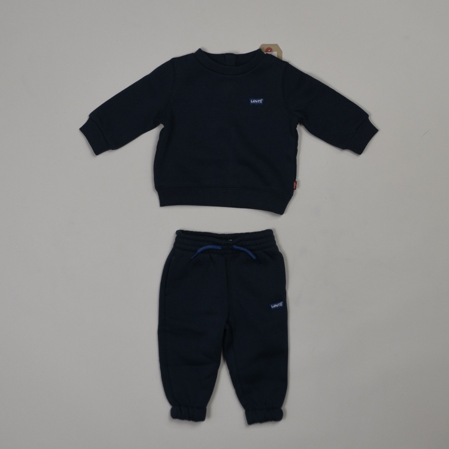 Completo Levi’s da bambina in morbido cotone felpato color rosa cipria e blu.La felpa presenta girocollo, polsini e fondo a costine, con piccolo logo Levi’s ricamato sul petto.Il pantalone coordinato è dotato di elastico in vita con coulisse regolabile e risvolto sul fondo, per una vestibilità confortevole.