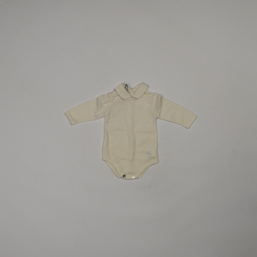 Body Maglificio di Verona a maniche lunghe color panna, realizzato in morbido tricot con colletto in maglia tono su tono.