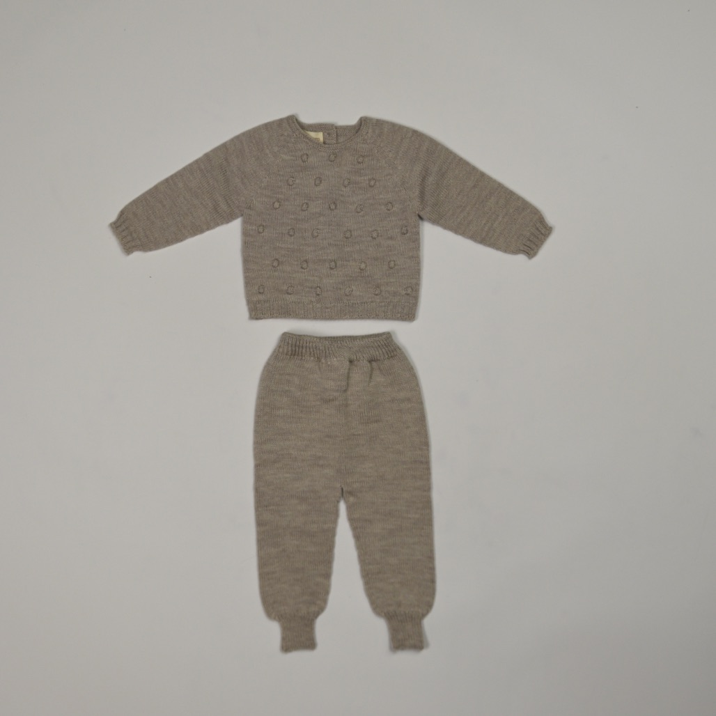 Completo Mi Lucero in maglia color tortora composto da maglioncino e pantalone coordinato.