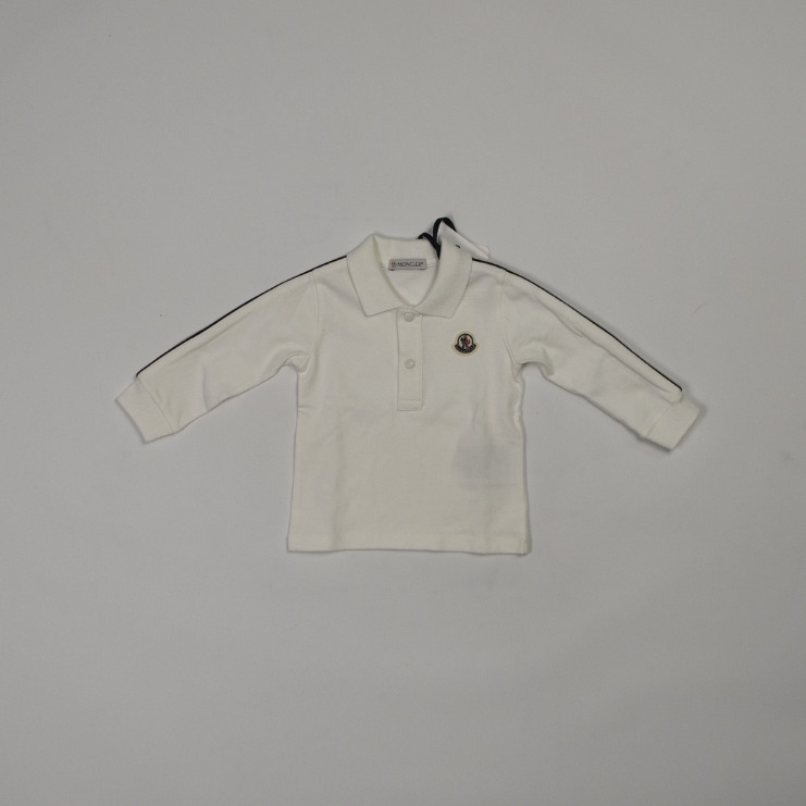 Polo Moncler Enfant a maniche lunghe color bianco ottico, realizzata in morbido piqué di cotone.