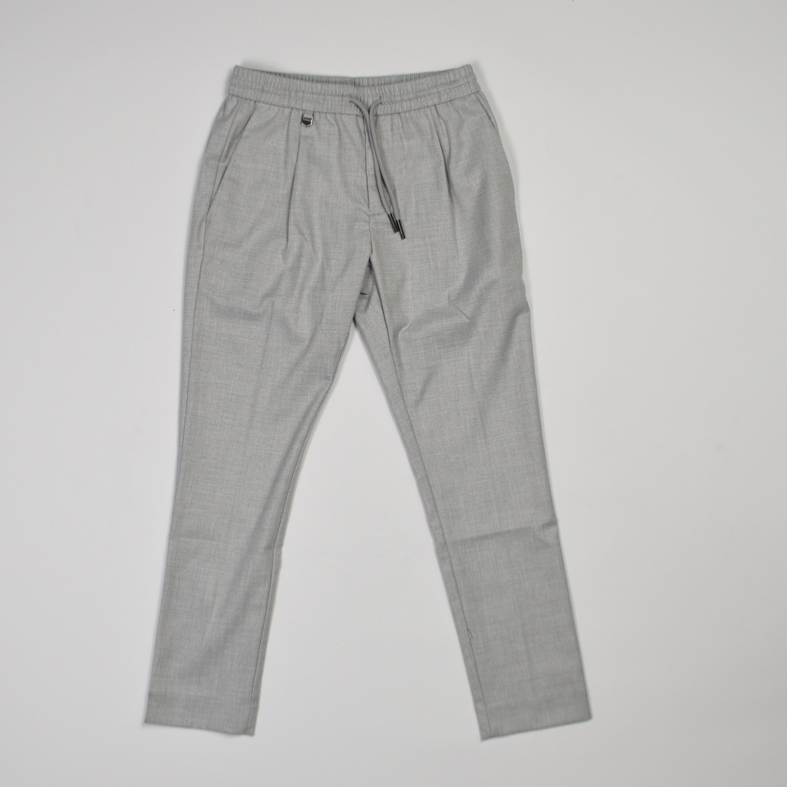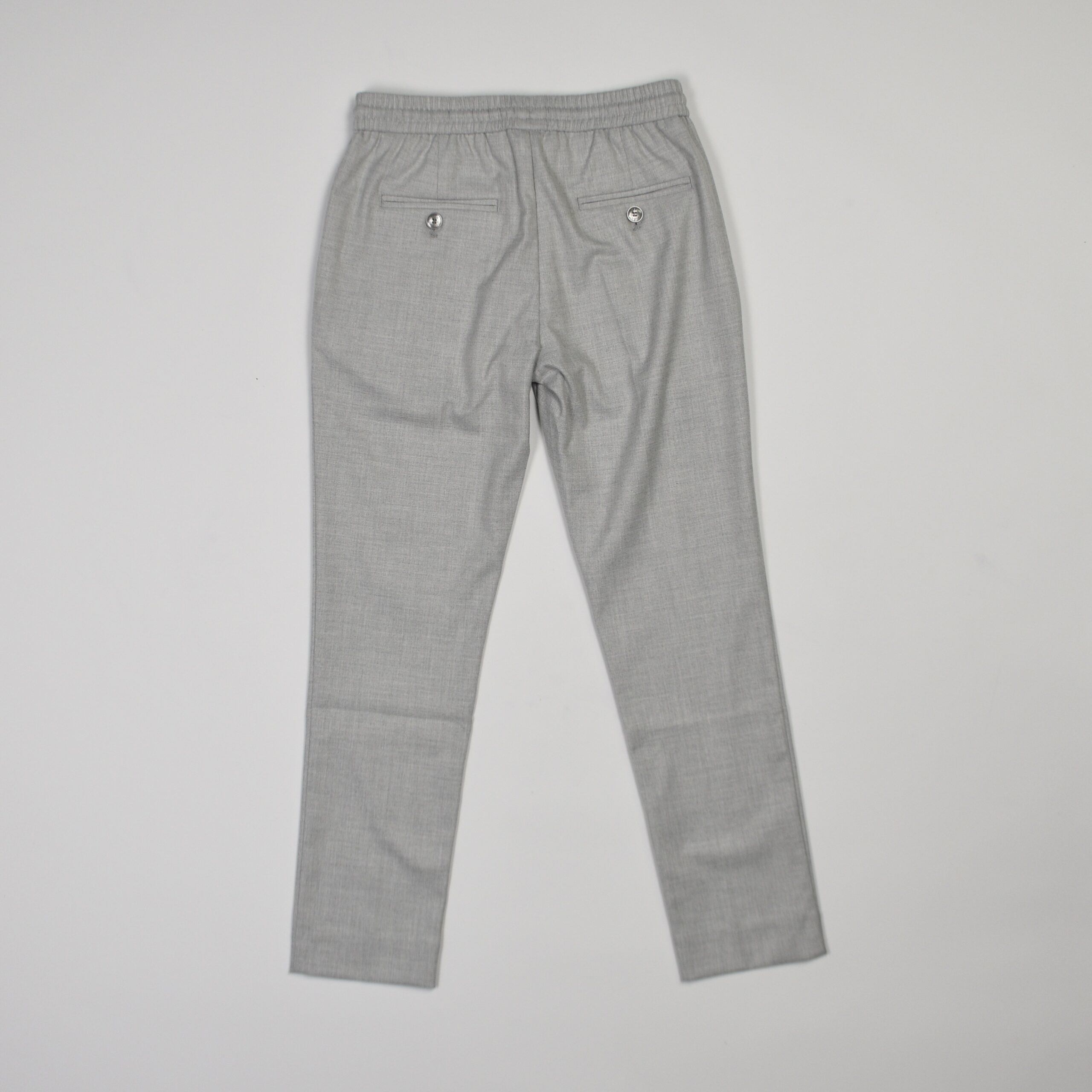 Colore grigio chiaro melange, con vita elasticizzata e coulisse regolabile.