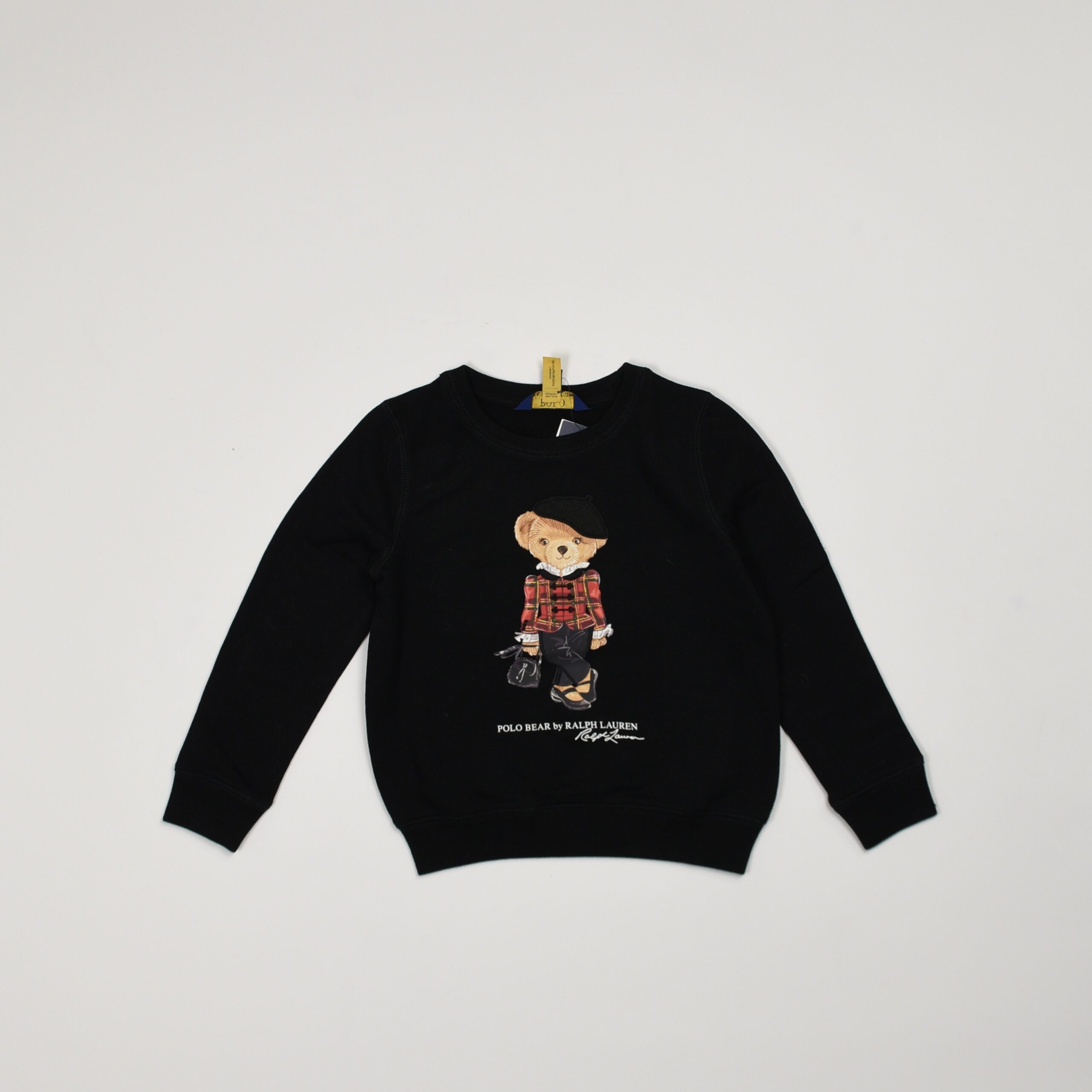 Felpa girocollo in cotone, colore nero. Sul davanti presenta la stampa del celebre Polo Bear vestito con camicia a quadri rossi e dettagli moda. Modello a manica lunga con vestibilità regolare, polsini e fondo a costine.