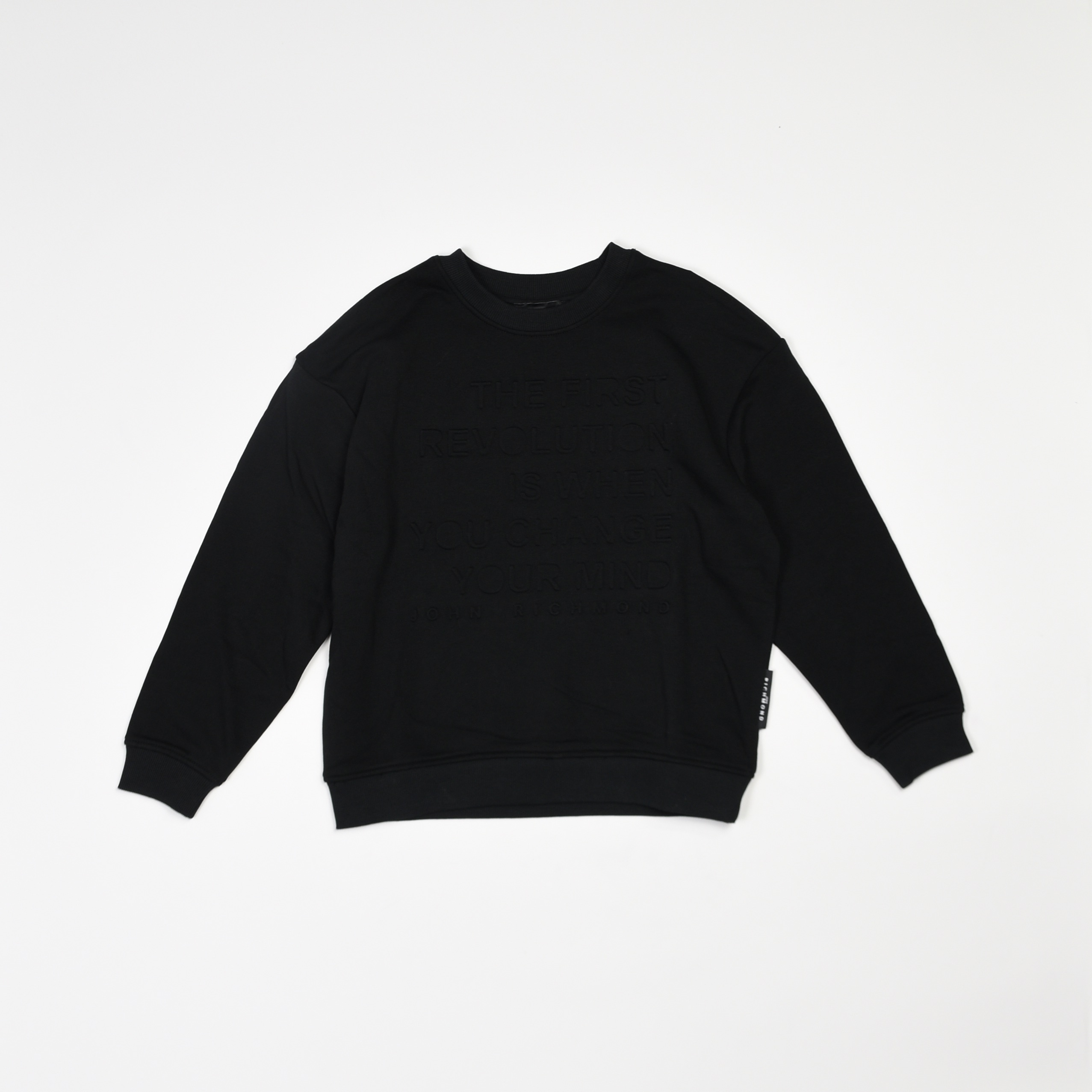Realizzata in cotone morbido, presenta la scritta tono su tono in rilievo sul davanti “The first revolution is when you change your mind”. Modello a maniche lunghe con polsini e fondo a costine. Sul lato è applicata l’etichetta logata Richmond.