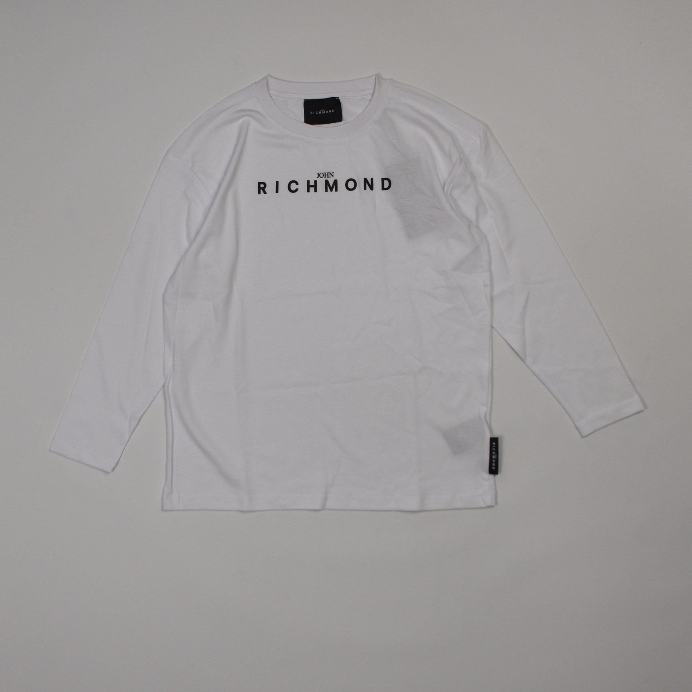 Maglia in cotone a maniche lunghe, colore bianco, caratterizzata da girocollo e logo John Richmond stampato a contrasto sul petto.