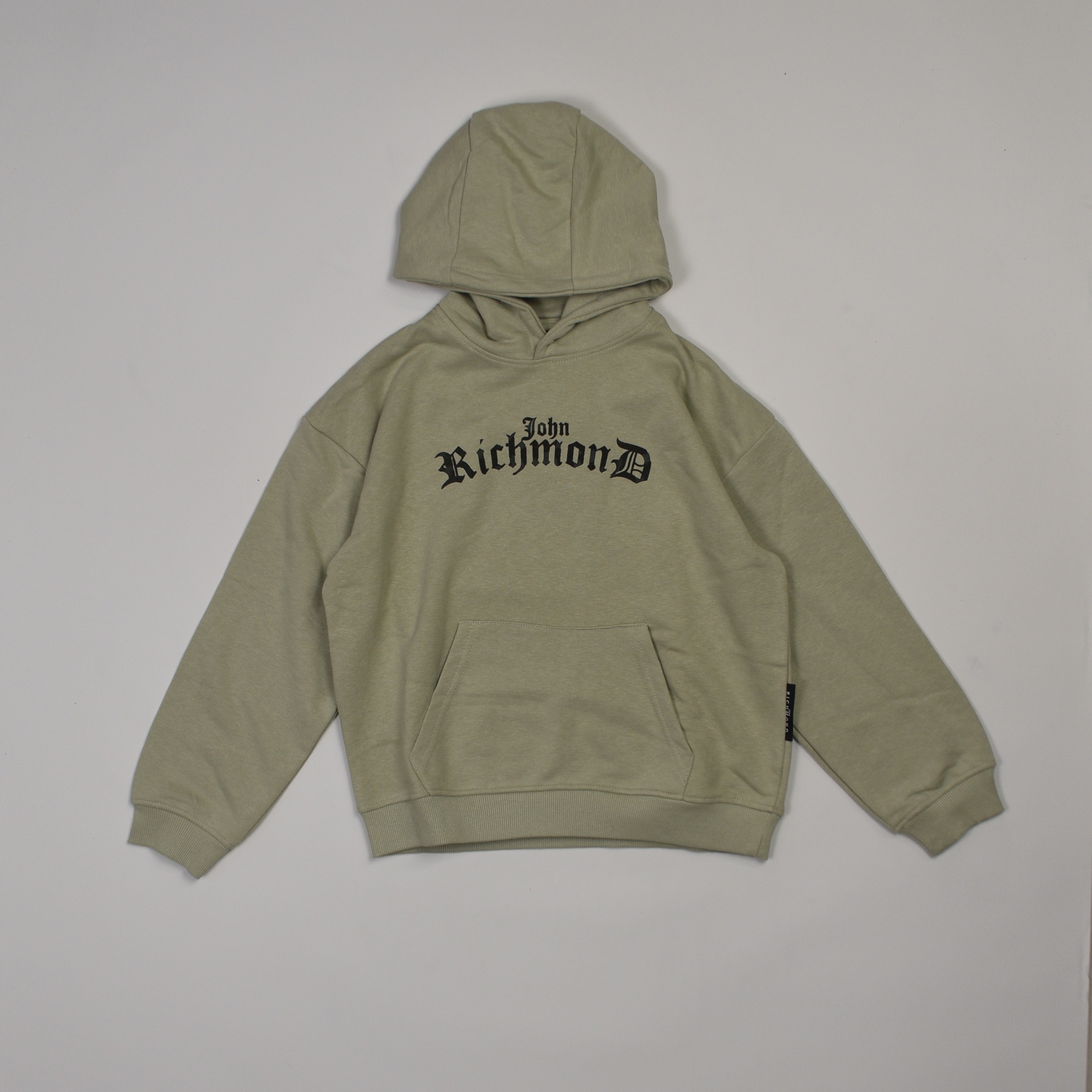 Felpa in cotone a tinta unita, caratterizzata da tasca a marsupio frontale e logo John Richmond in stile gotico stampato sul petto. Polsini e fondo a costine per una vestibilità confortevole.