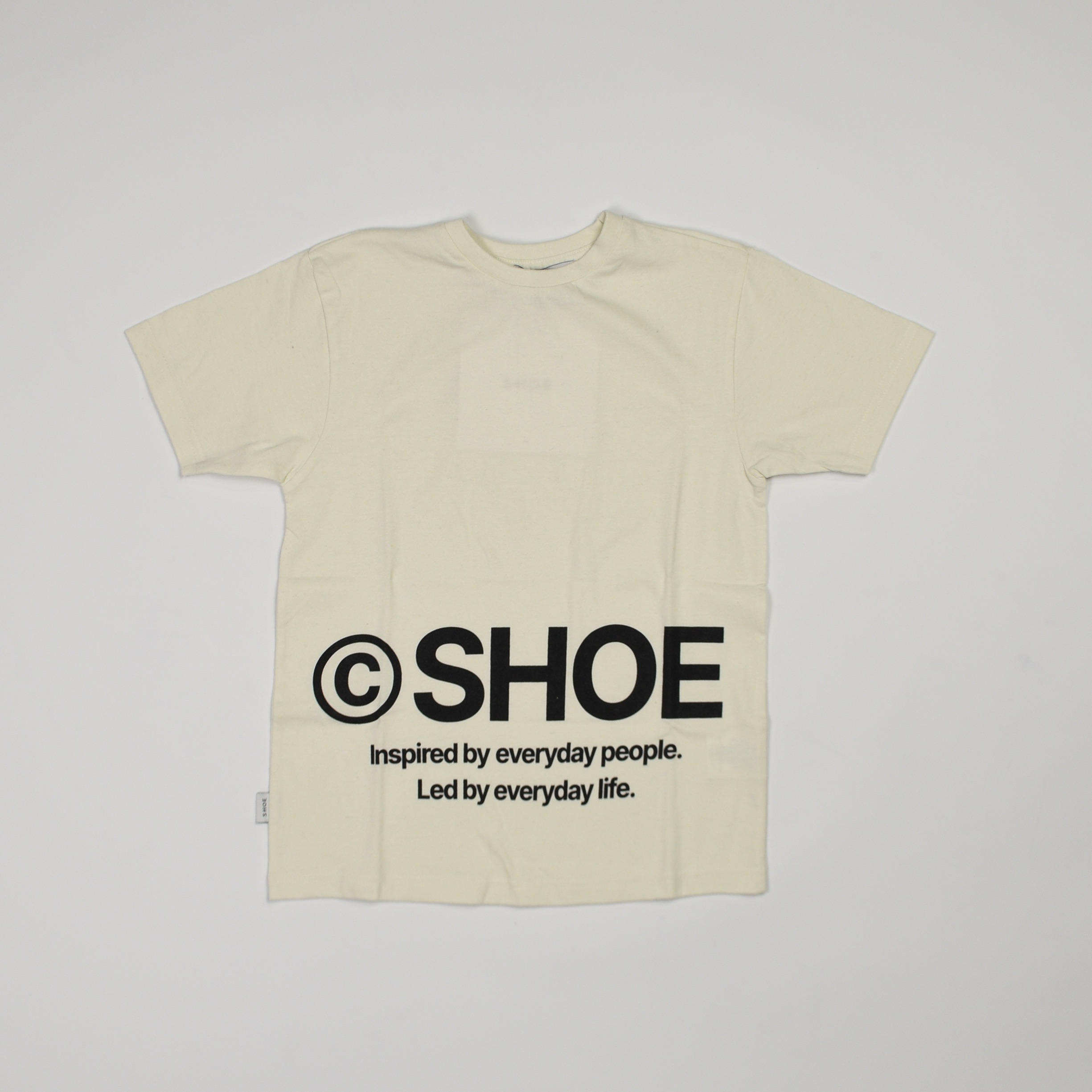 T-shirt a maniche corte Shoe in colore avorio. Modello girocollo con maxi stampa logo nera a contrasto sul davanti, arricchita dalla scritta “Inspired by everyday people. Led by everyday life.” Tessuto morbido e leggero per il massimo comfort quotidiano.