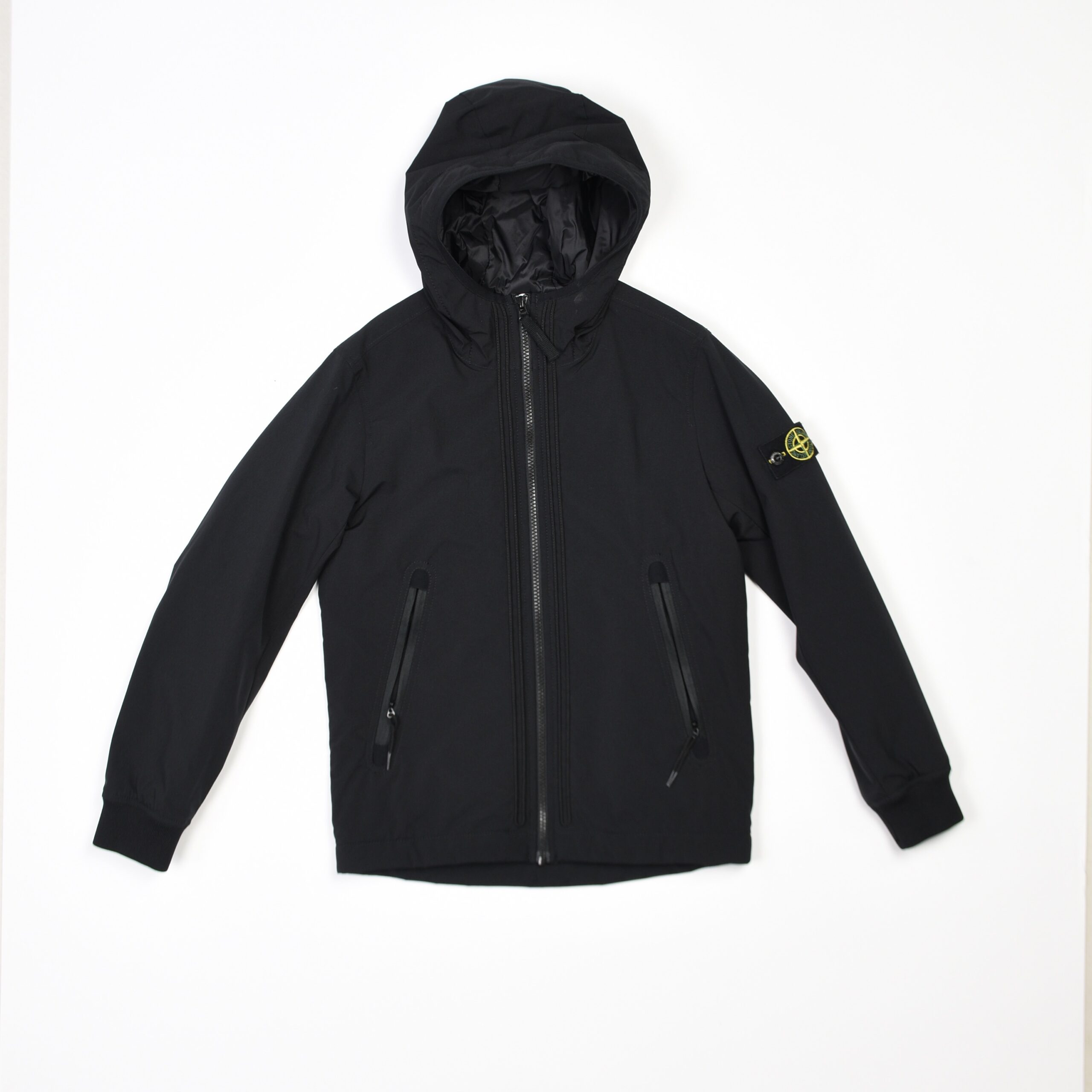 Giubbotto Stone Island color nero in tessuto tecnico antivento e idrorepellente. Modello con cappuccio fisso, chiusura con zip frontale e tasche laterali con zip termosaldate. Iconico badge con bussola Stone Island applicato sulla manica sinistra. Un capo dal design essenziale e moderno, perfetto per un look sportivo e metropolitano.