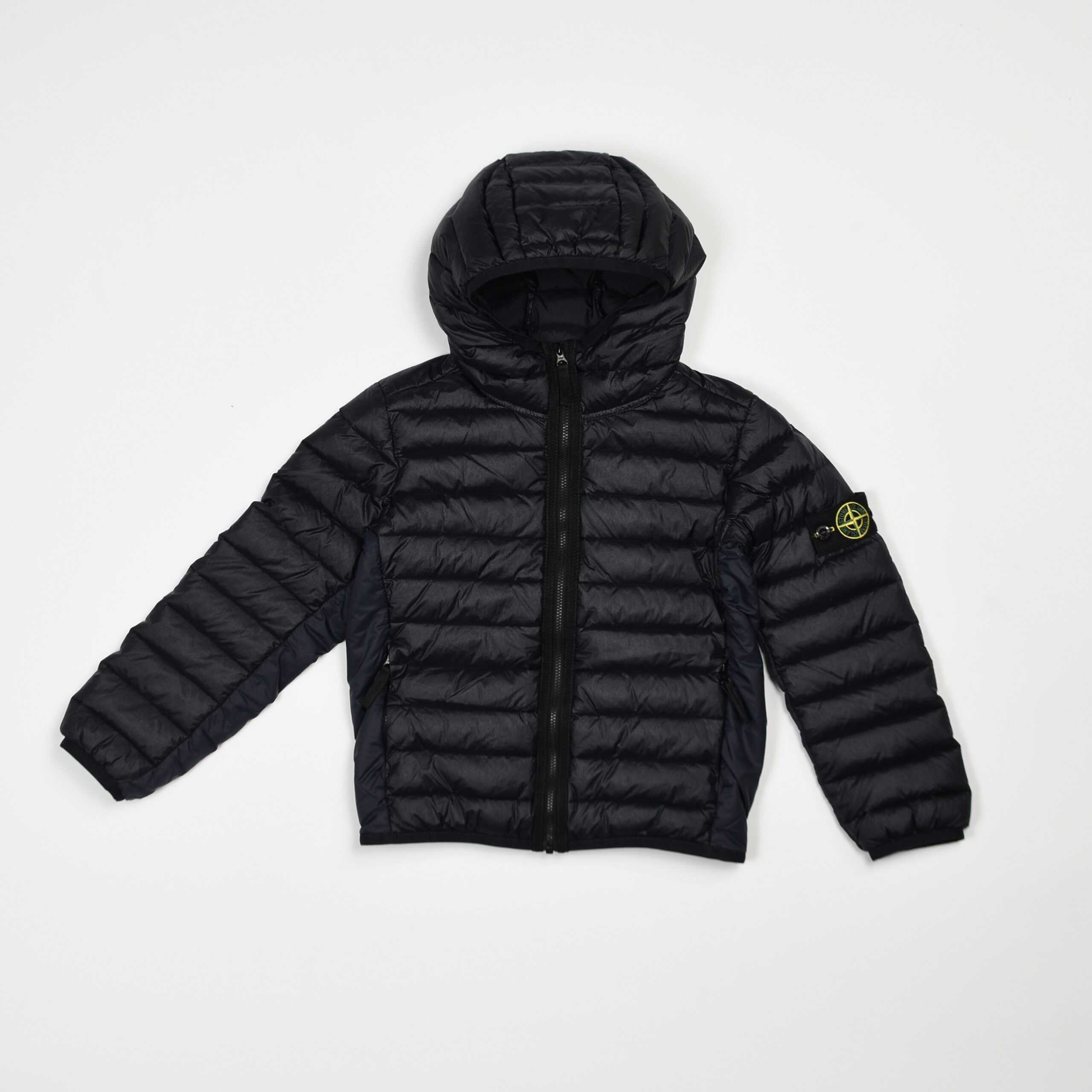 Piumino leggero con cappuccio fisso e chiusura a zip. Presenta tasche laterali con zip e il caratteristico badge Stone Island applicato sulla manica. Modello pratico e versatile, ideale per la stagione più fredda.
