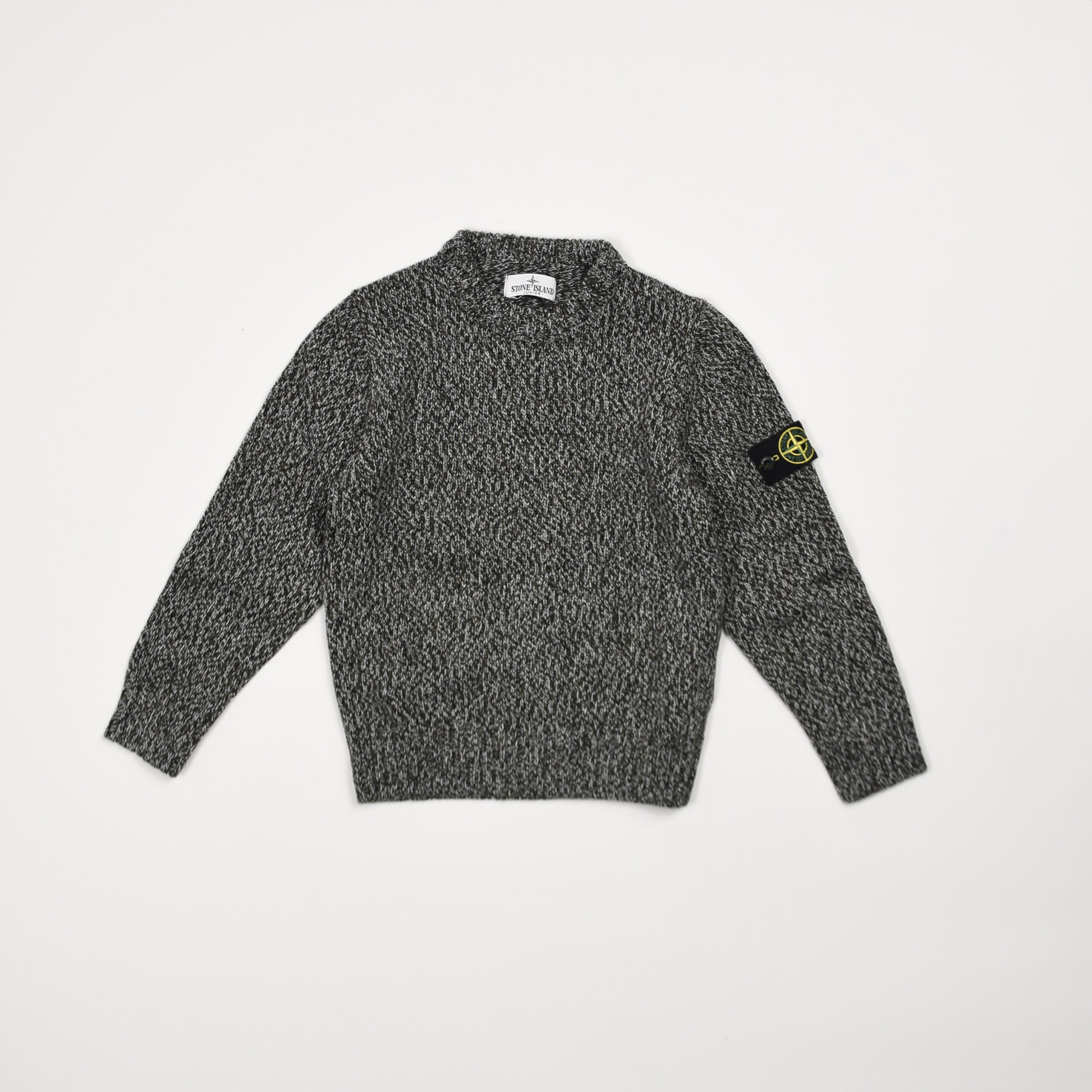 Maglione girocollo in maglia mélange grigio e nero, realizzato in tessuto caldo e confortevole. Caratterizzato dal patch removibile con logo Stone Island applicato sulla manica sinistra. Modello a manica lunga con polsini, collo e fondo a costine elasticizzate.
